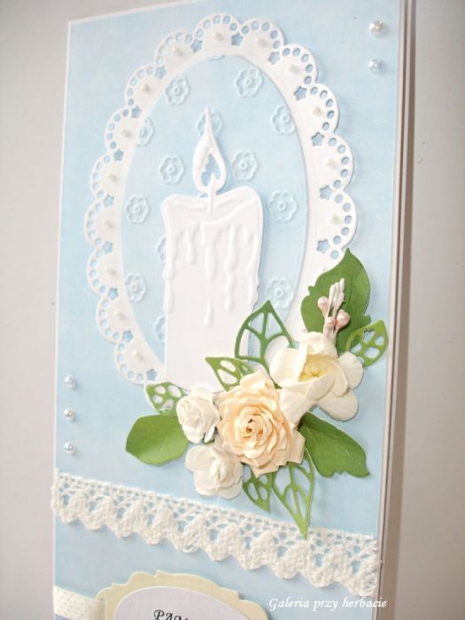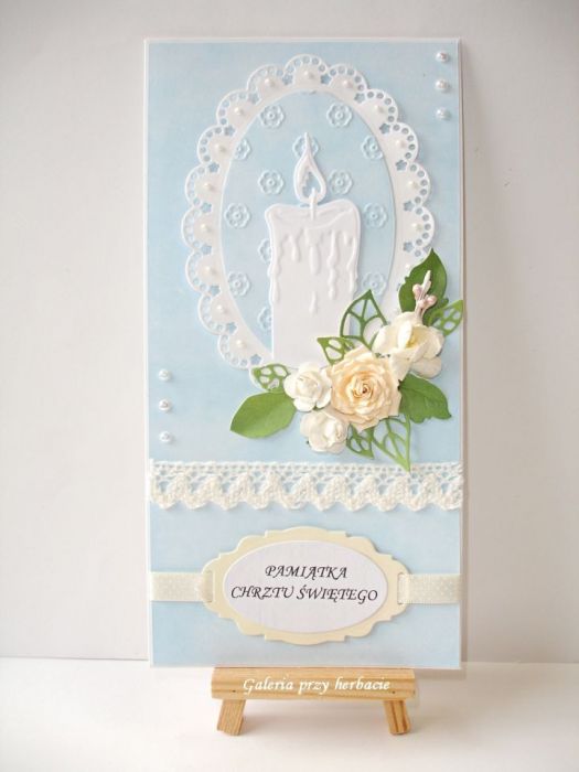 Nazwa produktu: Błękitna kartka na chrzest ze świeczką
