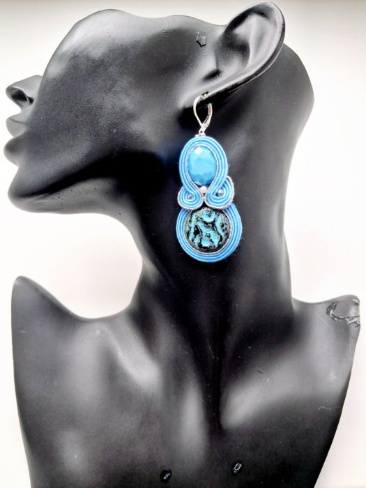 Kolczyki wykonane w modnej technice haftu sutaszowego. Jest ona pracochłonna, ale daje piękne efekty.
