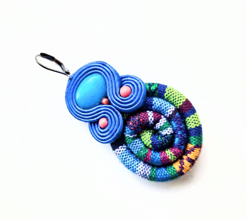 Kolczyki wykonane w modnej technice haftu sutaszowego. Jest ona pracochłonna, ale daje piękne efekty.