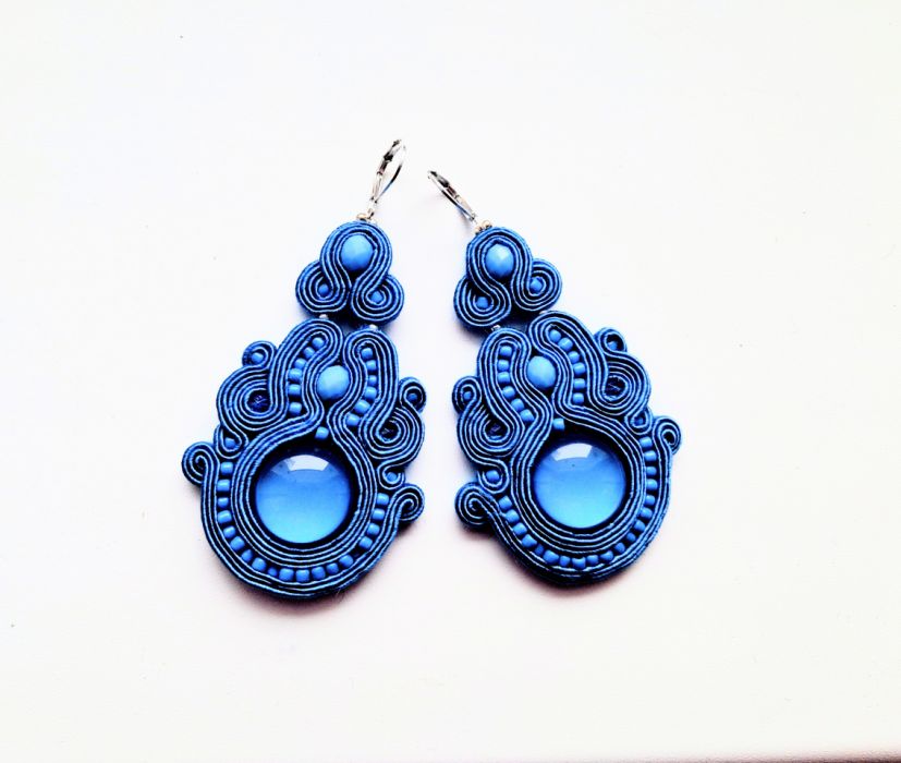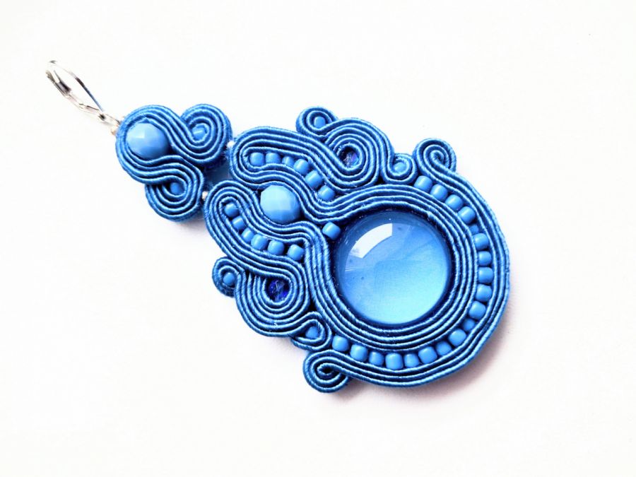 Kolczyki wykonane w modnej technice haftu sutaszowego. Jest ona pracochłonna, ale daje piękne efekty.