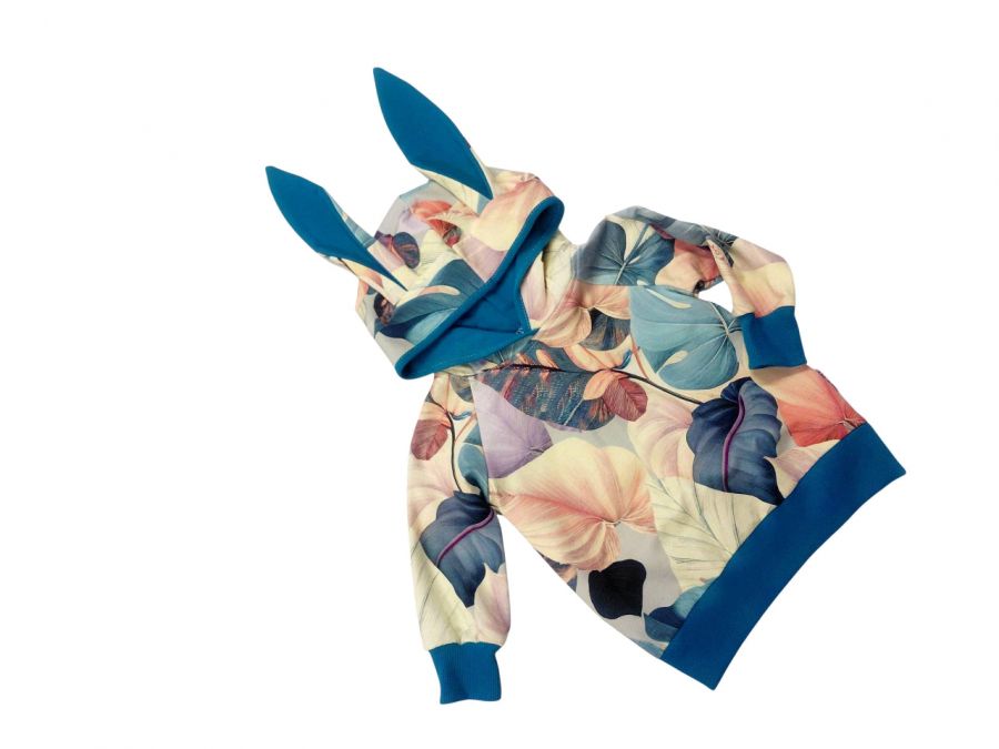 Nazwa produktu: Bluza z kapturem i uszami liście turkus r.80 wyprzedaż