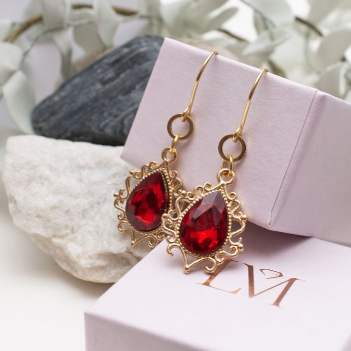 Luksusowy design: Kolczyki zostały oprawione w precyzyjnie wykonane, złocone metalowe ażury, które dodają im lekkości i finezji. Kunsztowna oprawa doskonale podkreśla szlachetny charakter szlifowanych kryształów, tworząc subtelną grę światła, która mieni się w zależności od kąta patrzenia.