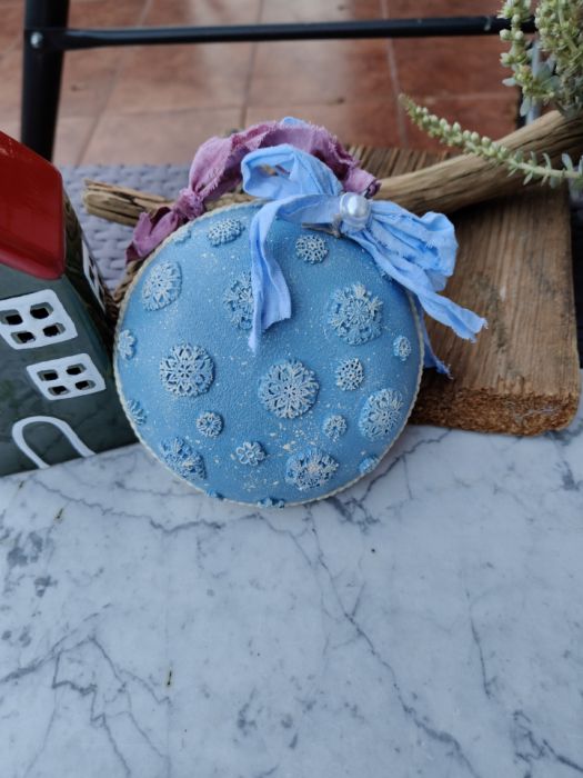 Ta ozdoba choinkowa handmade została wykonana z dbałością o każdy szczegół – od dekoracyjnej ramki, przez miękkie wstążki i kokardy, aż po starannie dobrane akcenty w stylu shabby chic. Bombka jest lekka, trwała i prezentuje się pięknie zarówno na choince, jak i jako element świątecznej dekoracji domu.