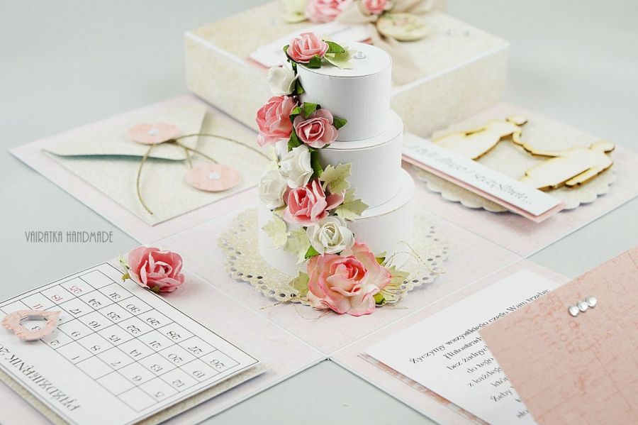 Elegancki prezent ślubny w postaci "eksplodującego" pudełka - zamknięte - to z pozoru zwykłe pudełko - po zdjęciu wieczka ścianki rozkładają się i ukazuje się zaskakujące wnętrze :)