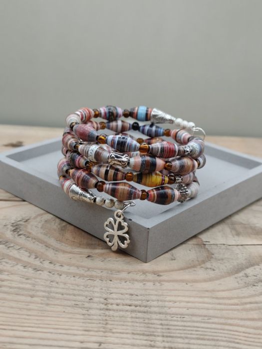 Nazwa produktu: Bransoletka Boho z Papierowych Koralików Czterolistna Harmonia
