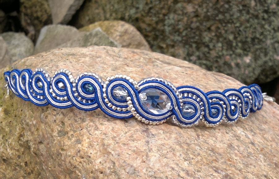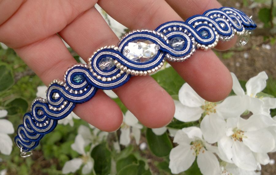 Przepiękna bransoletka została wykonany ręcznie techniką haftu sutasz.