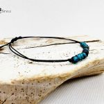 Bransoletka wykonana z małych koralików szklanych lustrzanych w kolorze turkusowym i matowych czarnych. Koraliki w kształcie kulki o średnicy 4 mm nawleczone są na nylonowy czarny sznurek. Zapinana jest na tzw. zapięcie makramowe, regulowane.