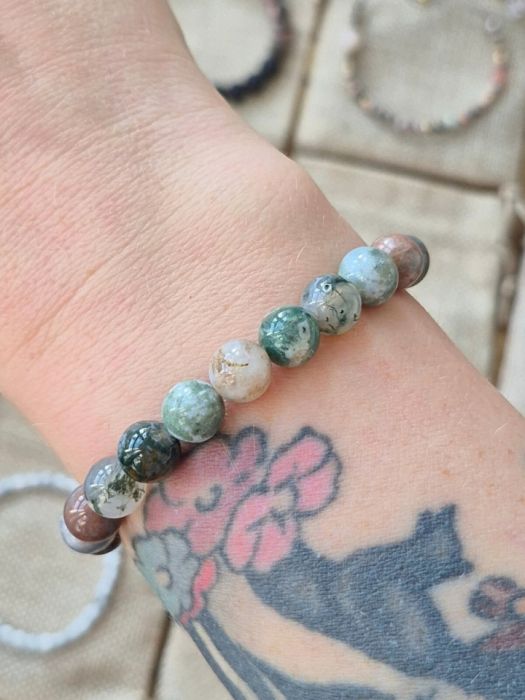 Bransoletka wykonana jest na przezroczystej gumce o grubości 0.8mm. Kamienie jakich użyłam do wykonania bransoletki to agat indyjski.