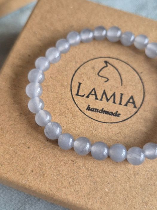 Bransoletka wykonana jest na przezroczystej gumce o grubości 0.8mm. Kamienie jakich użyłam do wykonania bransoletki to chalcedon.