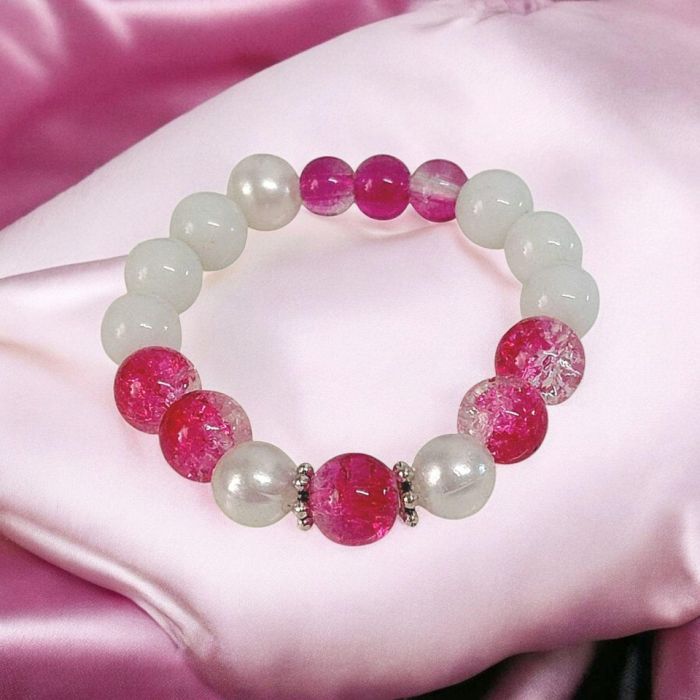 Nazwa produktu: Bransoletka na gumce kwiatek fuksja i biel