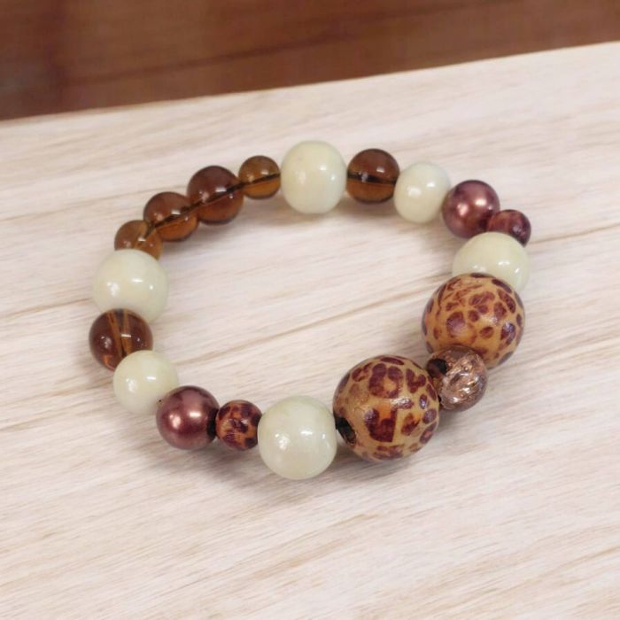 Koraliki szklane, ceramiczne, akrylowe, drewniane w rozmiarach 8-12mm. Elementy metalowe, posrebrzane lub w kolorze złota, antyalergiczne.