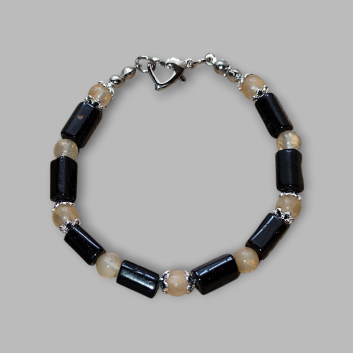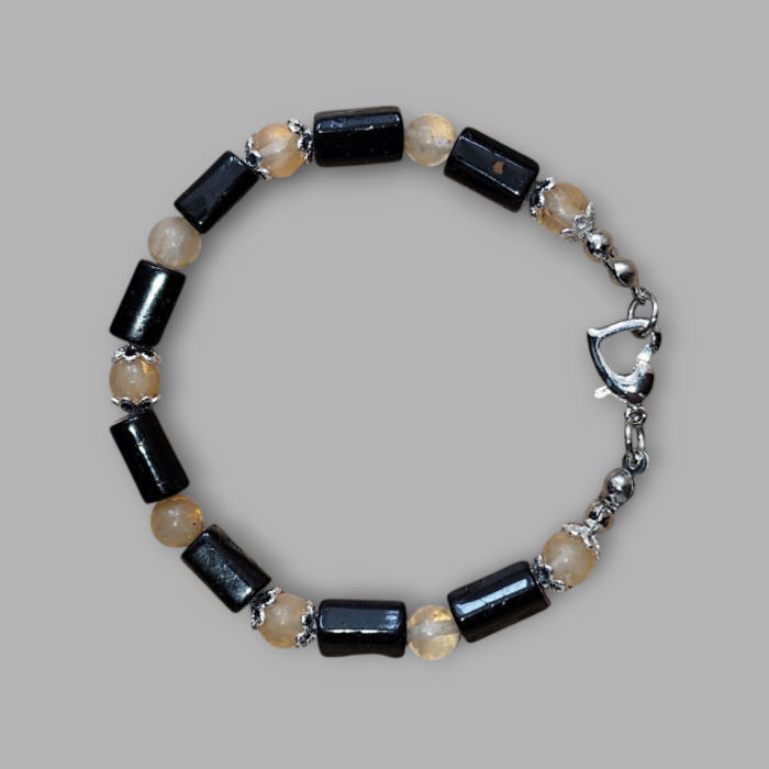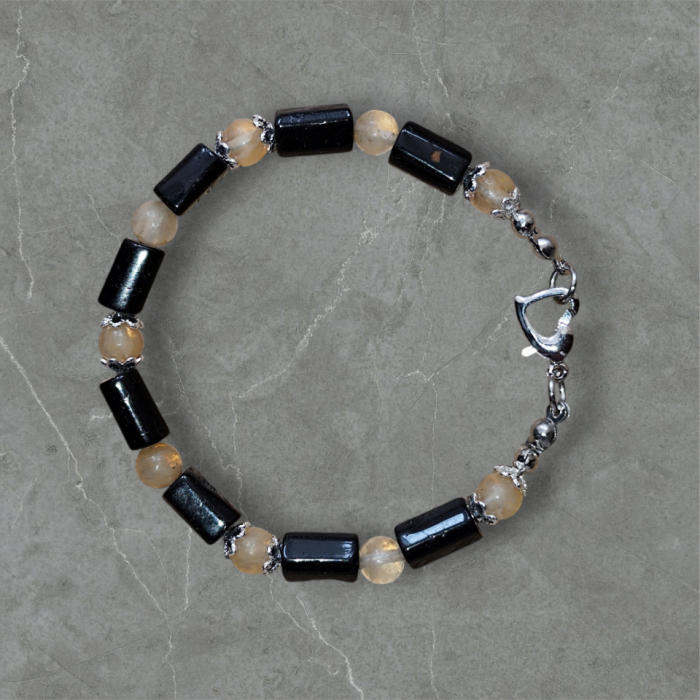 Bransoletka Ochrony i Obfitości: Czarny Turmalin i Cytryn - Długość 18 cm
