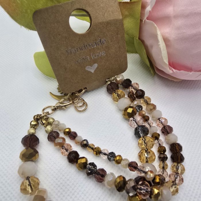 Bransoletka składająca się z 3 sznurów szklanych koralików, w pięknych stonowanych barwach, lekko mieniących się w słońcu