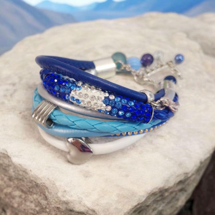 Nazwa produktu: Bransoletka rzemykowa niebieska cyrkonie