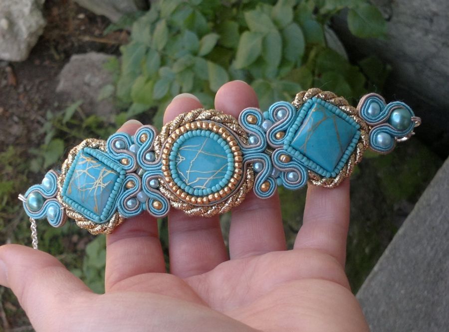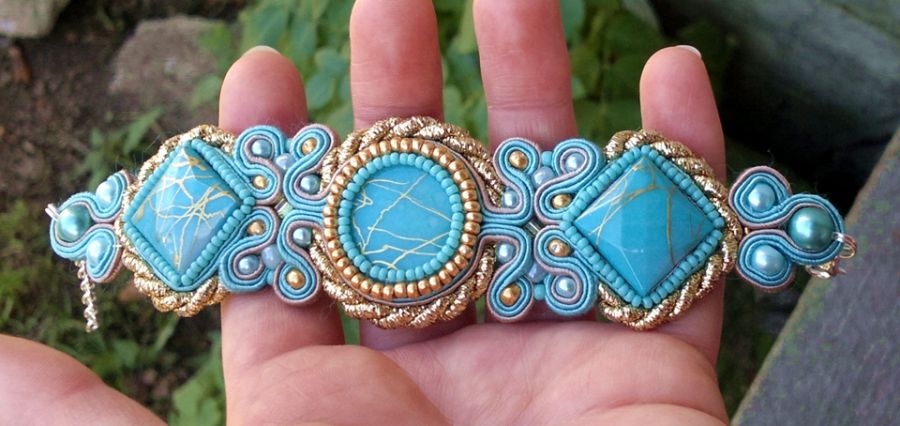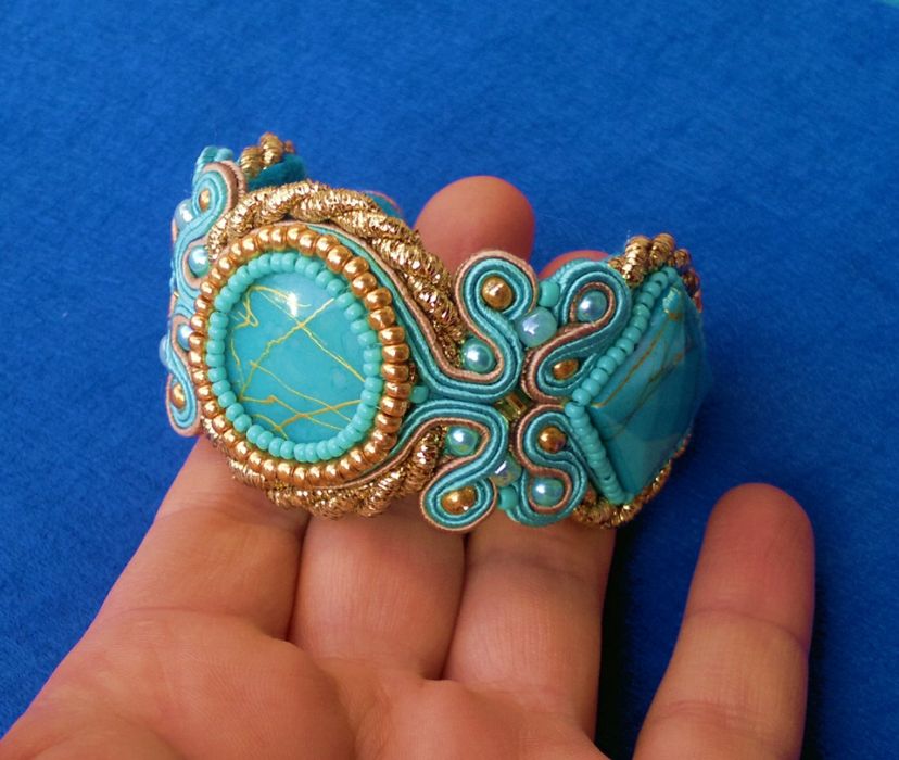 Piękna i efektowna bansoletka została wykonana ręcznie techniką haftu sutasz. Robi wielkie wrażenie!!!