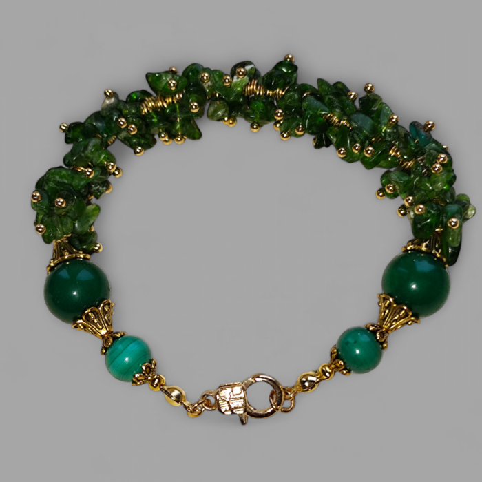 Bransoletka DIOPYSYD i ZIELONY WACHLARZ – Jadeit, Malachit