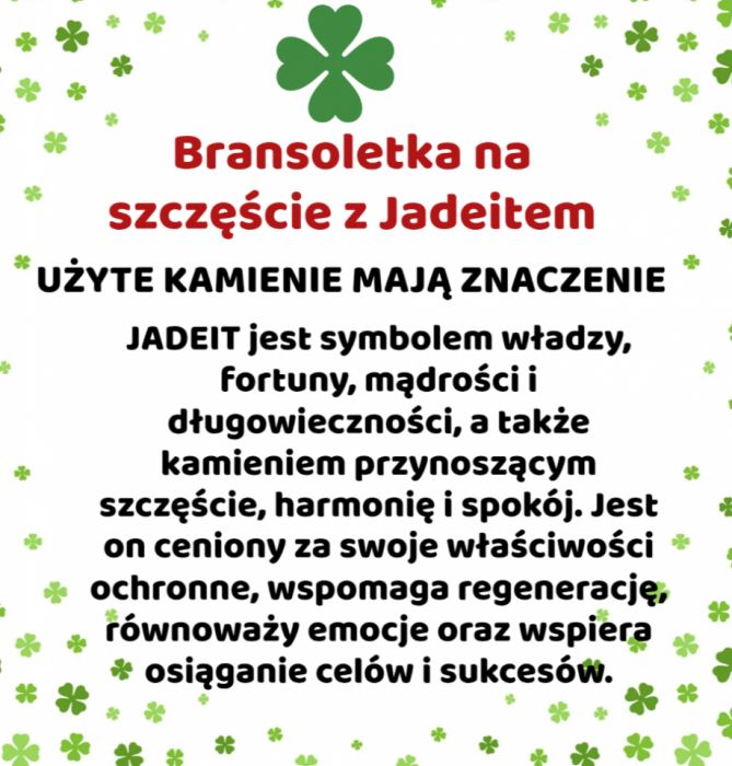 Zadaj pytanie dotyczące produktu: Bransoletka z jadeitem prezent na szczęście
