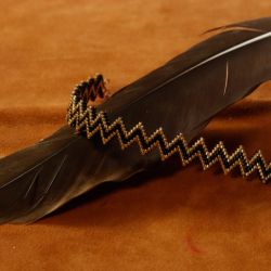 by sprawiał wrażenie dwustronnego. Wyszyty został z koralików złotych i czarnych.
