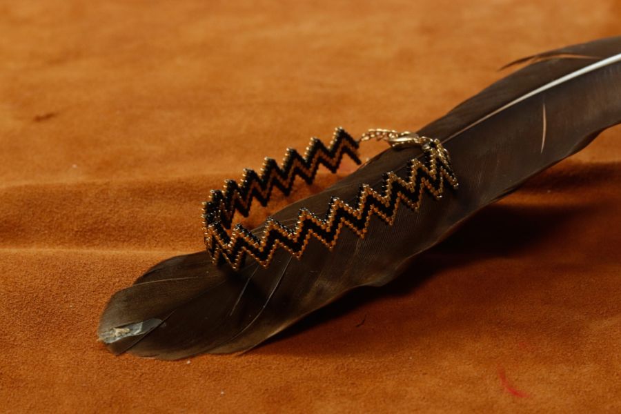 Bransoletka na nadgarstek wykonana ze szklanychch koralików Miyuki. Wzór utworzony tak,