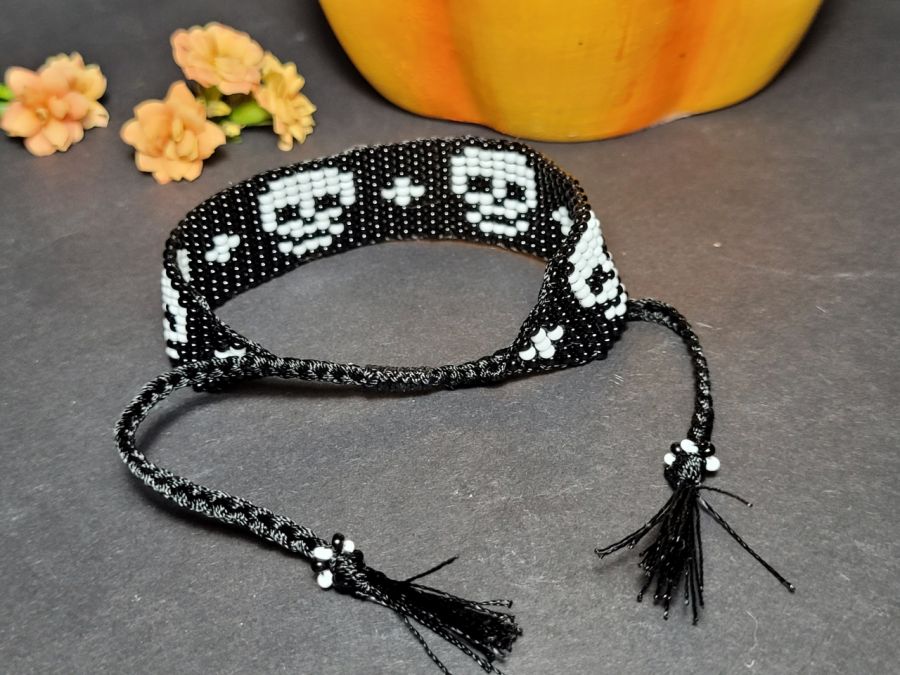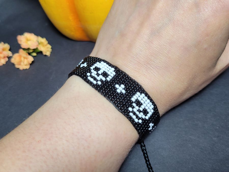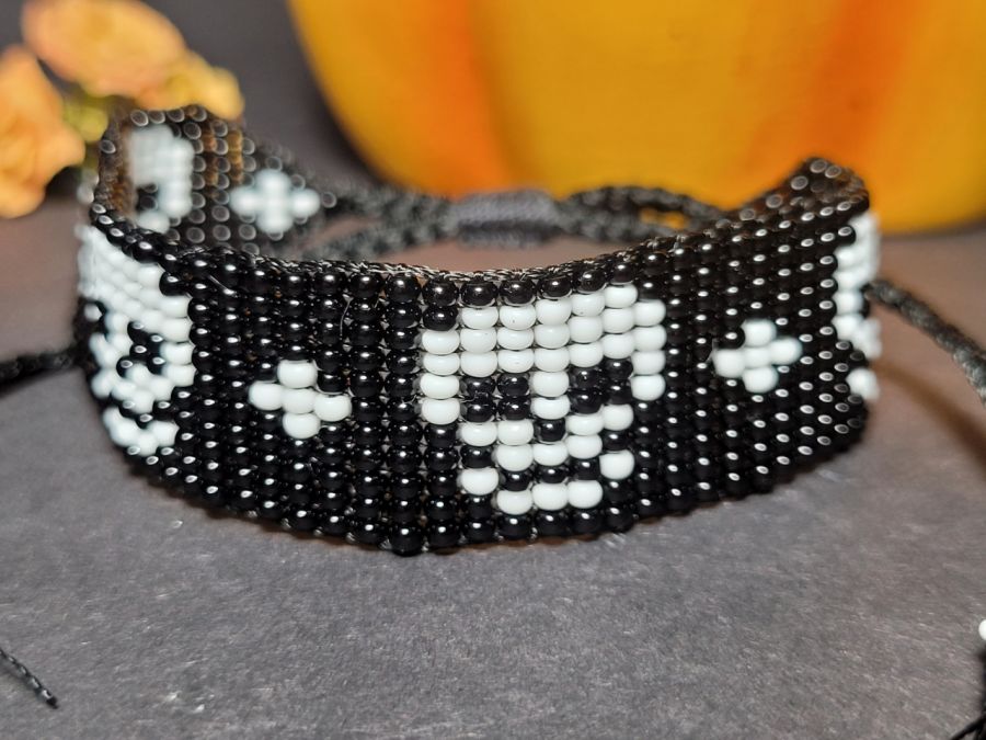 Ręcznie robiona z koralików bransoletka z motywem czaszki