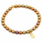 Bransoletka wykonana ze szklanych koralików doskonałej jakości ( czeskie szkło 6mm , kulki o matowej powierzchni w odcieniach złota, miedzi i wrzosu) i elementów metalowych.