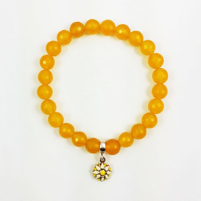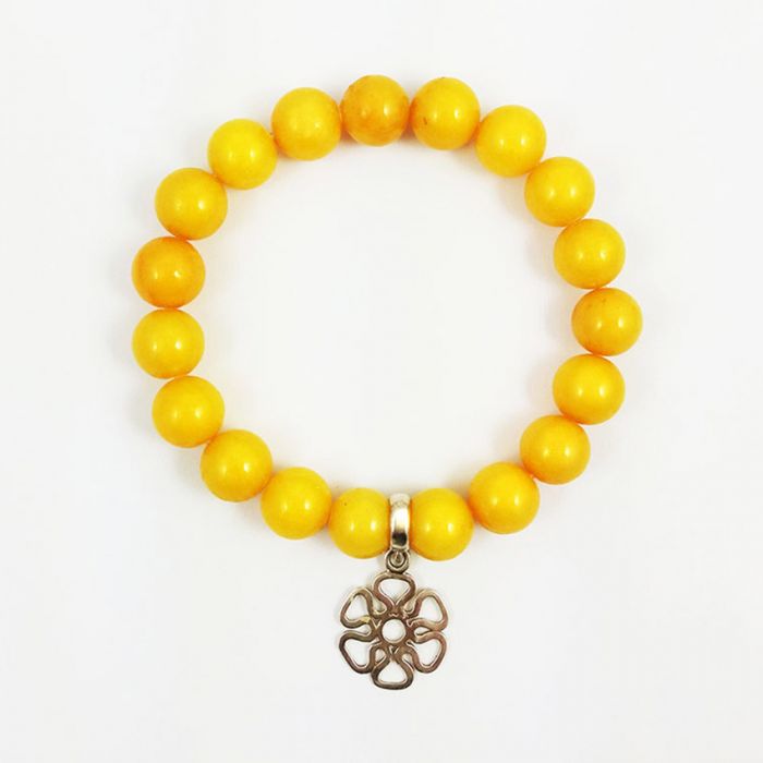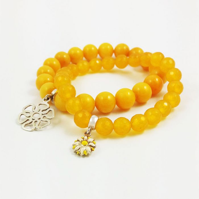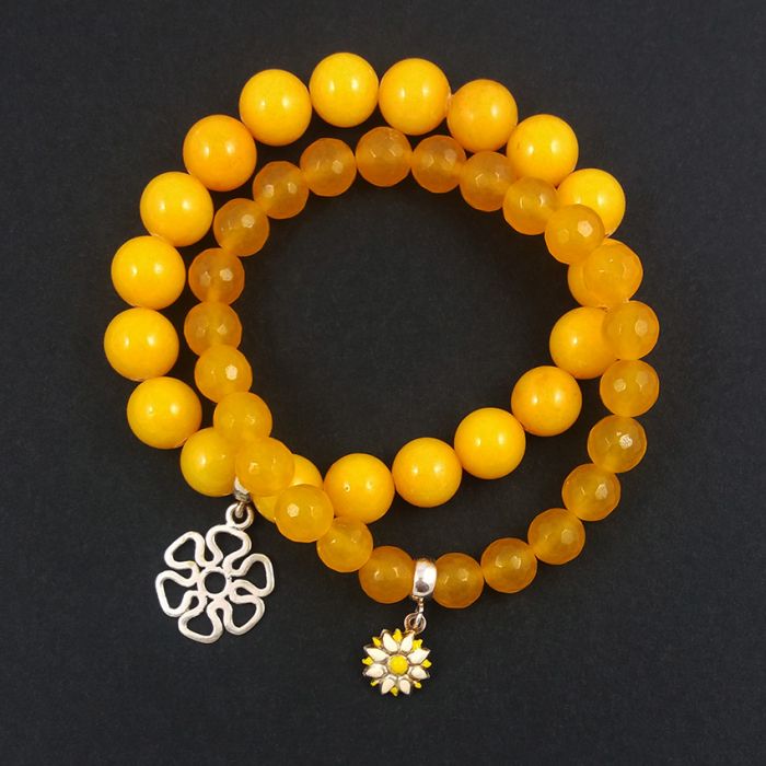 Dwie bransoletki z naturalnych kamieni w żółtych kolorach, na wygodnych elastycznych gumkach, ze srebrnymi (srebro AG 925) zawieszkami.