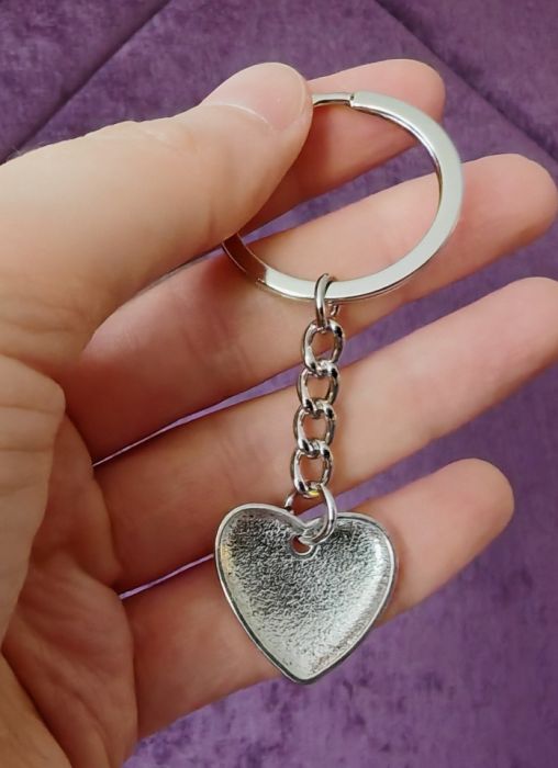 Breloczek metalowy w kolorze srebrnym z zabawną, uroczą zawieszką :)