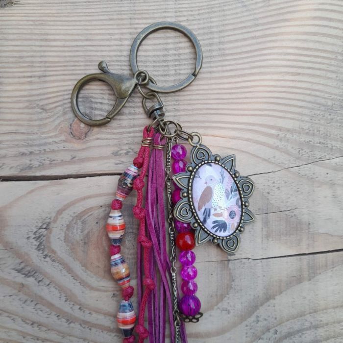 Nazwa produktu: Brelok do kluczy w stylu Boho z kaboszonem - Pink Bird Charm
