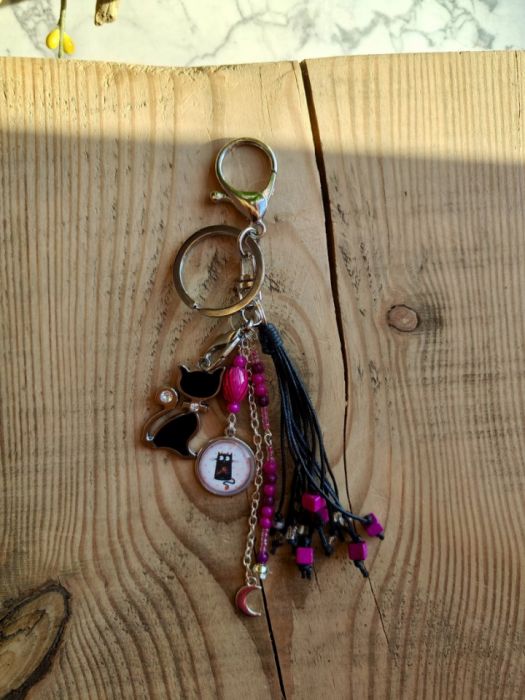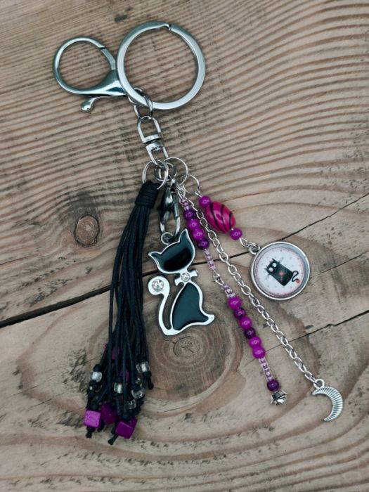Stylowy brelok z motywem czarnego kota to idealny dodatek dla miłośników magii, tajemniczej estetyki i kocich akcentów. Połączenie czerni i intensywnego różu przyciąga wzrok, a drobne detale – jak księżycowy charms i dekoracyjny chwost – nadają mu wyjątkowego, nieco mistycznego charakteru. Świetnie sprawdzi się jako ozdoba kluczy, torebki lub plecaka, a także jako drobny prezent z charakterem.