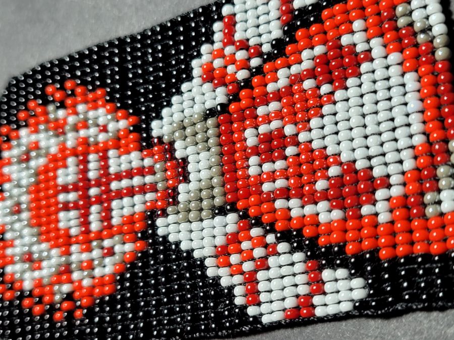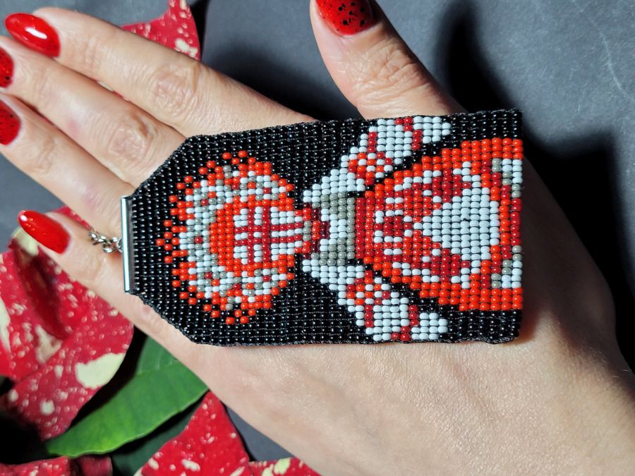 • Technika: Ręczne tkactwo koralikowe (bead weaving) – każdy koralik jest wplatany osobno, co gwarantuje niezwykłą trwałość i idealną geometrię wzoru.