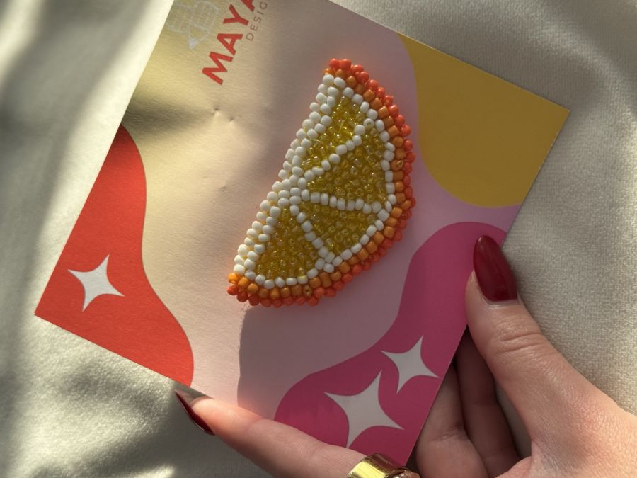 To wyjątkowy dodatek, który łączy w sobie rzemieślniczą precyzję i świeżą, radosną formę. Każda broszka powstaje z dbałością o najmniejszy detal – od soczystego, pomarańczowego koloru po subtelne przejścia nici, które nadają jej głębi.