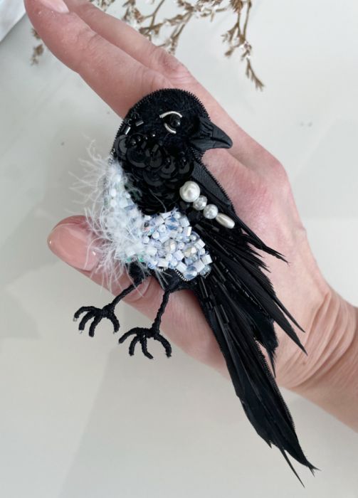 Duża autorska broszka „Sroka”.