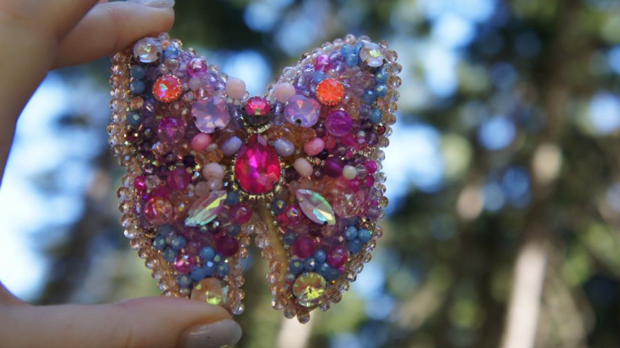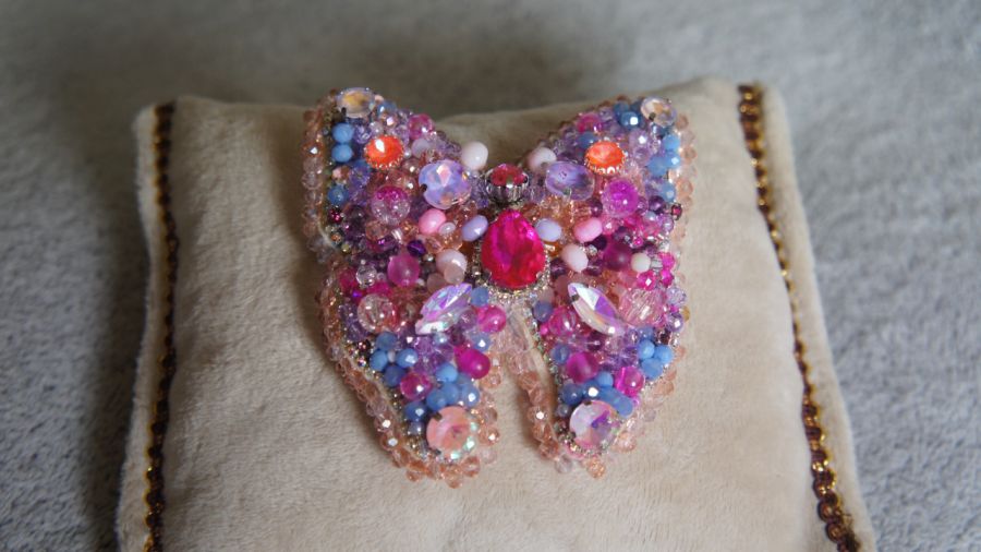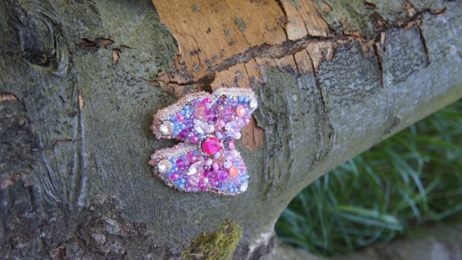 Ta ręcznie haftowana broszka z kolekcji Butterfly Spirit Jewellery jest delikatnym symbolem wolności, lekkości i nowych początków. Delikatne odcienie różu i błękitu tworzą na jej skrzydłach opowieść o odwadze, porzucaniu starych wzorców i rozkwicie na własnych warunkach.