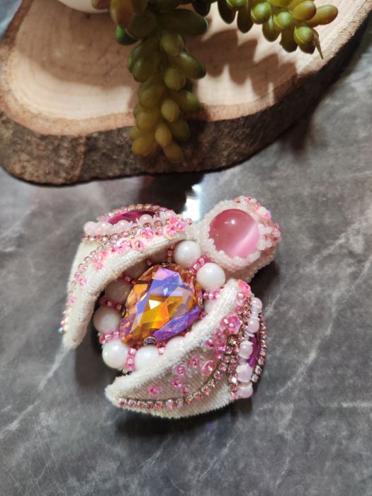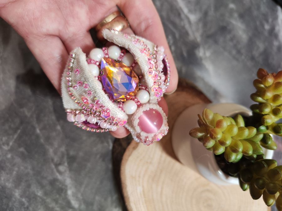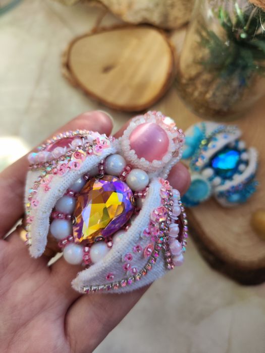 Nazwa produktu: ręcznie robiona broszka z koralików i kryształków