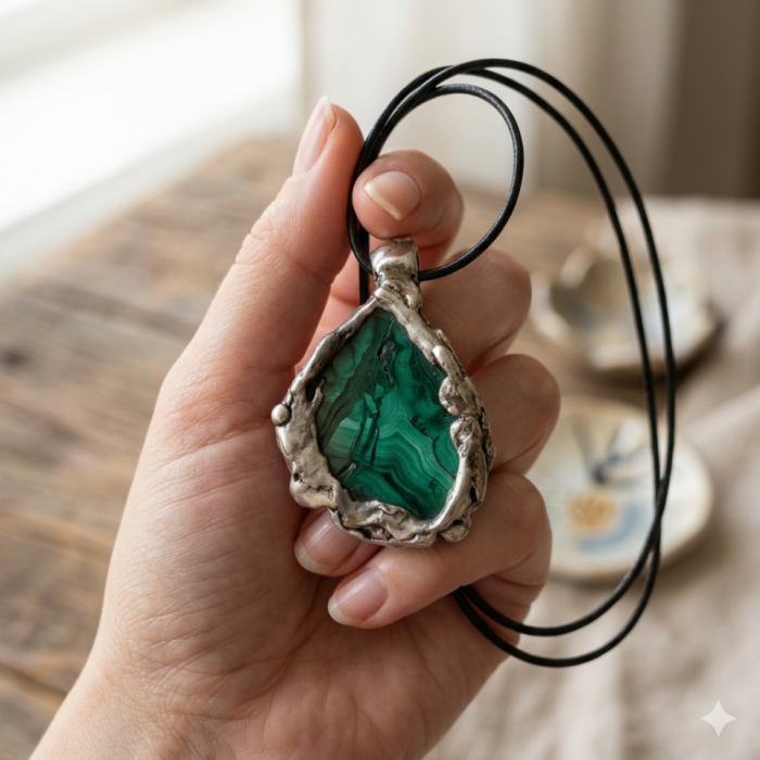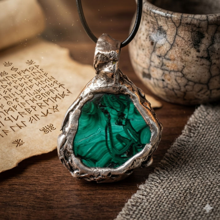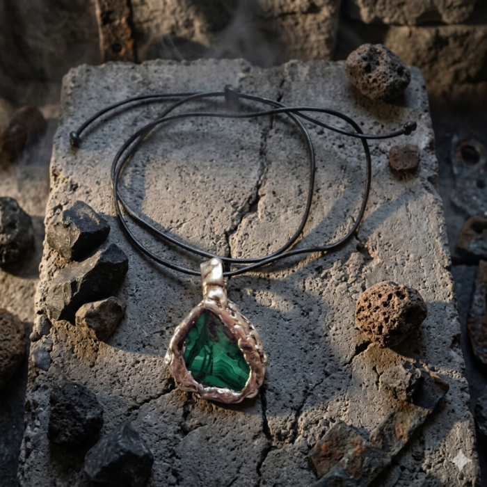 Pierwotna Siła – Surowy Wisior z Malachitem