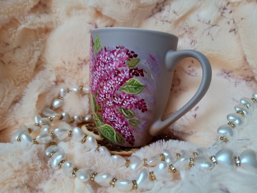 Kubek malowany wiele godzin z wielką troską o wszelkie szczegóły z miłości do natury, z miłości do tego co piękne i ulotne..