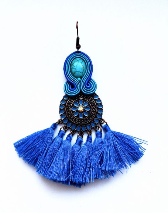 Kolczyki wykonane w modnej technice haftu sutaszowego. Jest ona pracochłonna, ale daje piękne efekty.