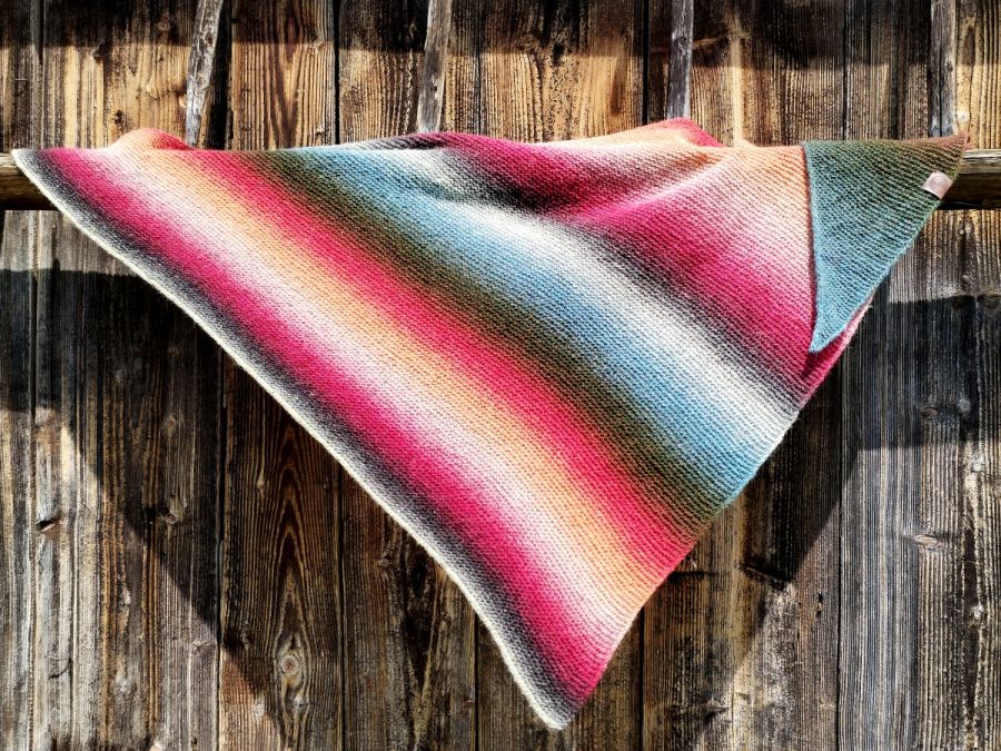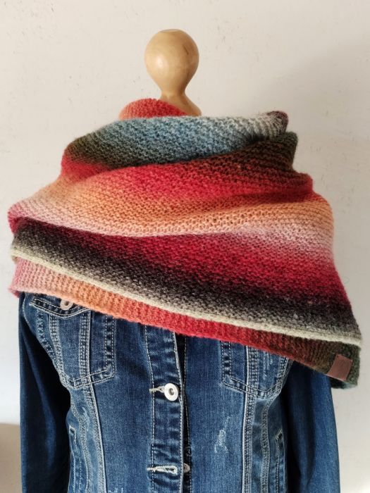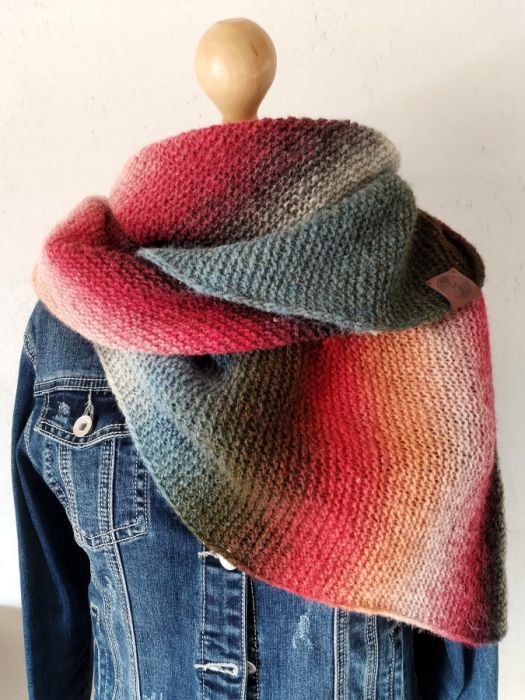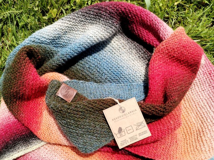 Nazwa produktu: Chusta wełniana na drutach w kolorowe pasy