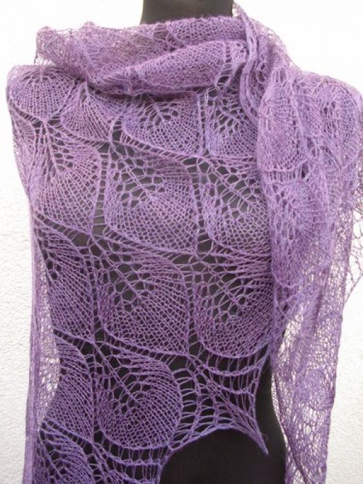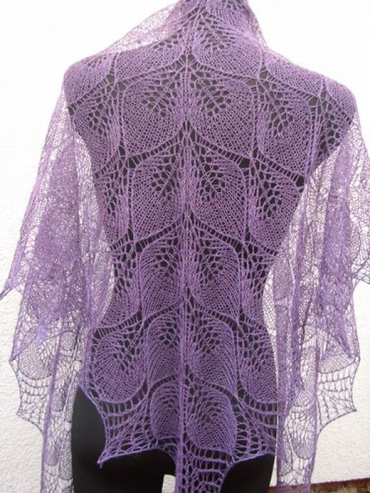 Ekskluzywna, wyjątkowa , ażurowa chusta wykonana ręcznie z włóczki będącej mieszanką alpaki i jedwabiu ( 70% i 30%) w kolorze wrzosowym.Niezwykle delikatna, miękka i miła w dotyku, wyjątkowy i oryginalny dodatek do stroju na wiosnę i letnie wieczory.Pranie ręczne w temp. 30 stopni, suszenie na płasko po nadaniu odpowiedniego kształtu.