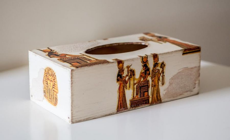 Drewniany chustecznik ręcznie zdobiony, malowany i lakierowany, z wysuwanym dnem ułatwiającym włożenie chusteczek. Dla osoby ceniącej oryginalność będzie praktyczną i piękną ozdobą wnętrza.