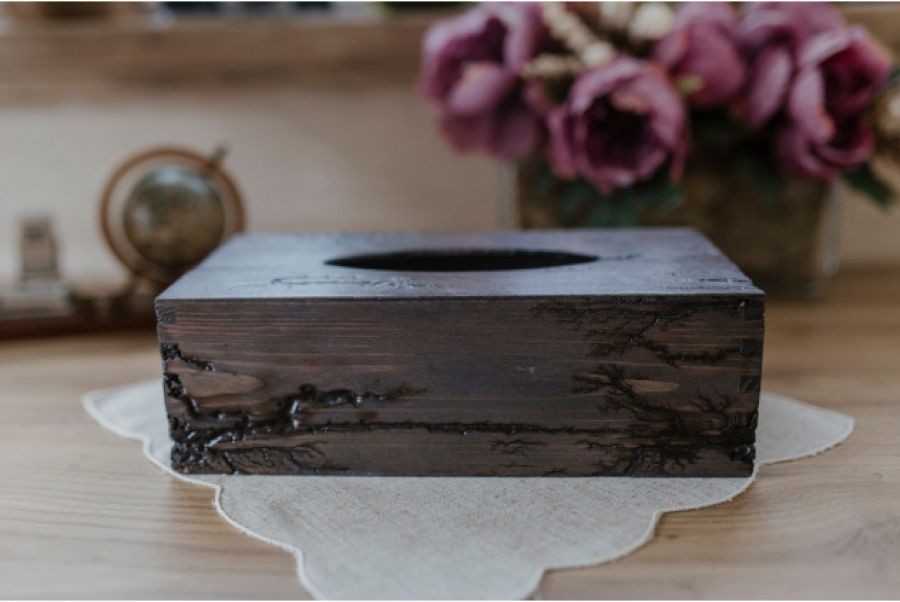 Dla każdego człowieka zdarza się czasem złapać katar, albo uronić parę łez. Wtedy sięga zazwyczaj po chusteczki. Znając Państwa potrzeby, zaprojektowaliśmy idealne połączenie funkcjonalności i dizajnu.Naszym celem było stworzenie czegoś co jest nie tylko eleganckie i cioszące oko, ale i przydatne. Pudełko na chusteczki brzmi banalnie, ale za to jest świetnym zastępstwem dla starych nudnych i wiecznie gniotących się papierowych pudełek. Pudełko jest wykonane ręcznie, specjalną techniką, które nadaje mu niepowtarzalny urok. Dobór koloru i kształtu, dopieści wasze pomieszczenia niezwykłym urokiem oraz charyzmą.