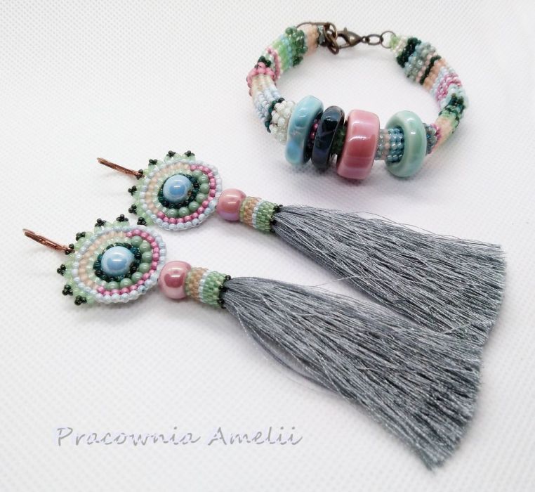 Komplet (bransoletka + kolczyki), niepowtarzalne, oryginalne, w pastelowych kolorach, wykonane precyzyjnie, starannie i szybko. Kolczyki były dorabiane, aby stworzyły całość z bransoletką. Pani Anita, niezwykle miła, pomocna, kontaktowa. Polecam w 100%. Na pewno jeszcze skorzystam z usług tej pracowni:)).