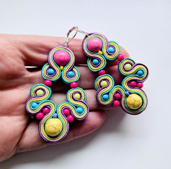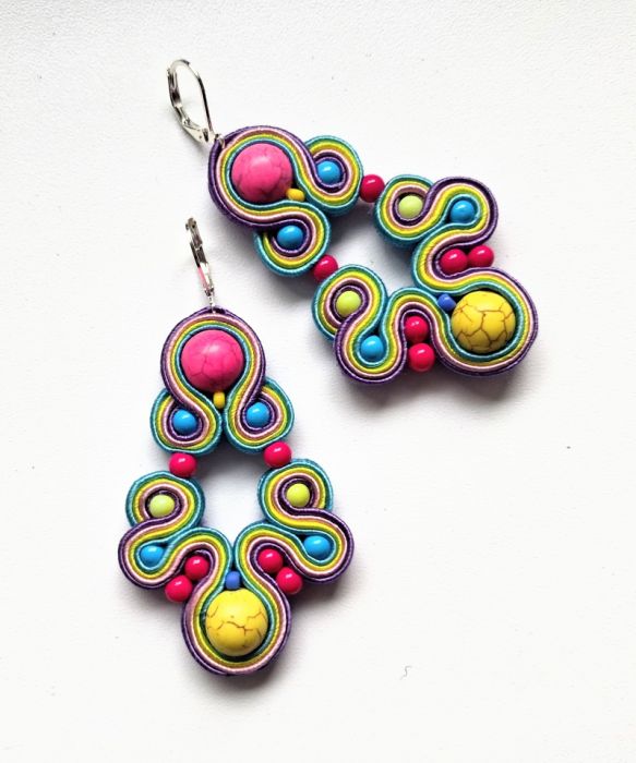 Kolczyki wykonane w modnej technice haftu sutaszowego. Jest ona pracochłonna, ale daje piękne efekty.