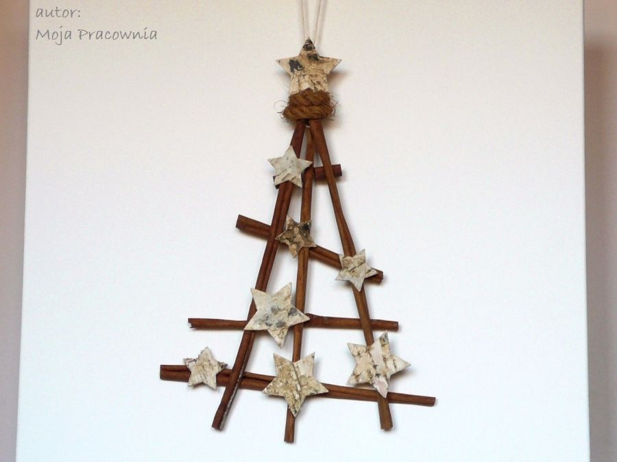 Świąteczna, pachnąca cynamonem choinka z gwiazdkami. Do zawieszenia np. na drzwi.