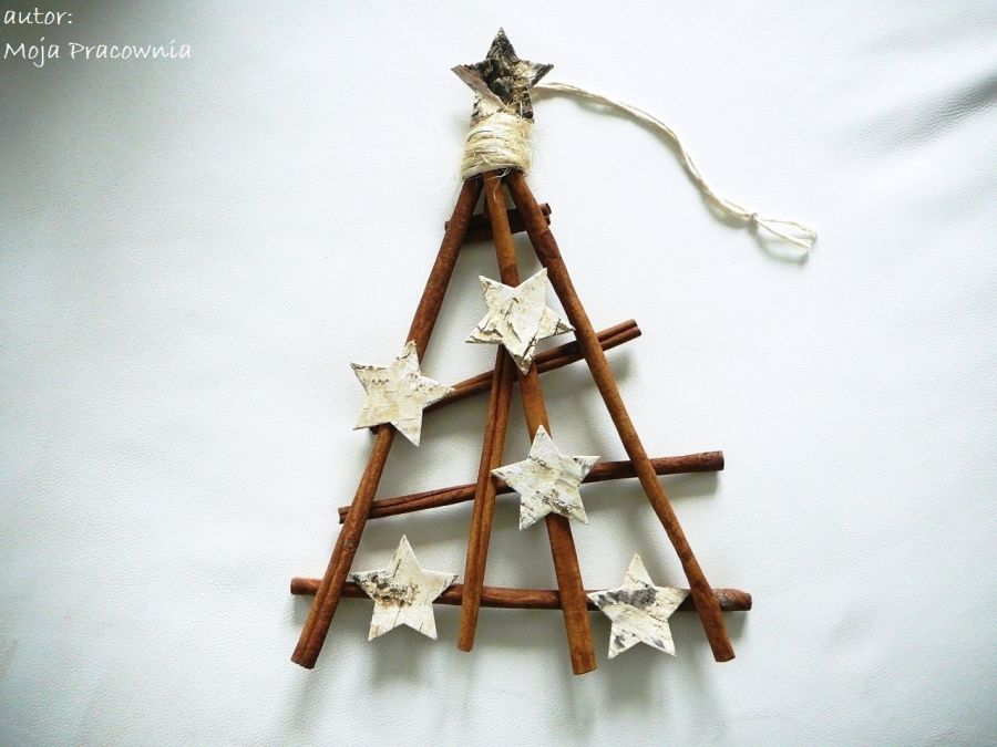 Świąteczna, pachnąca cynamonem choinka z gwiazdkami. Do zawieszenia np. na drzwi.