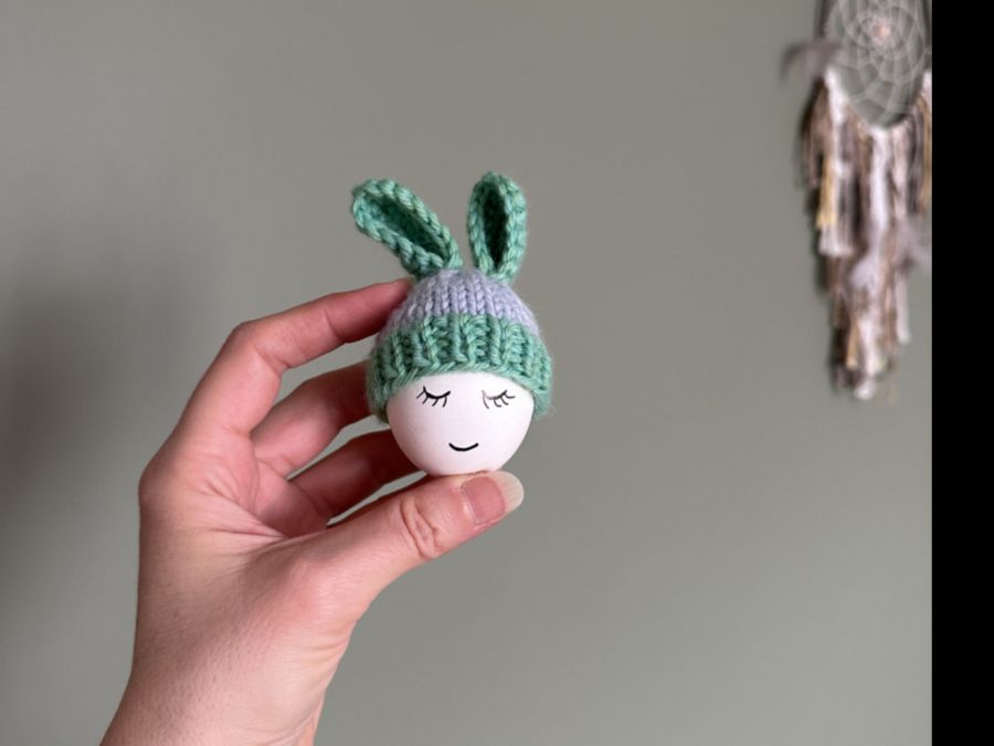 Niebanalna dekoracja na stół świąteczny - wełniana czapeczka na jajka wielkanocne, wykonana ręcznie na drutach z owczej wełny.