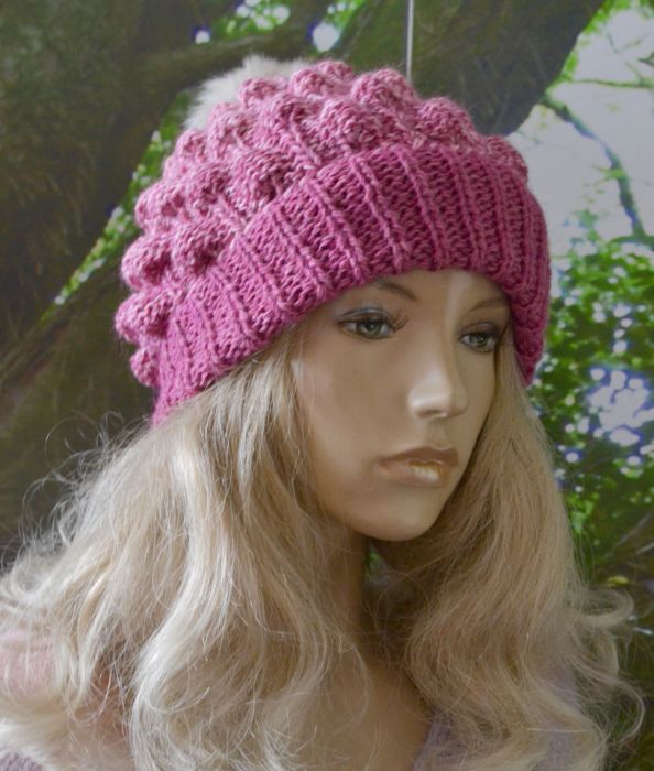 Nazwa produktu: Czapka bąblowa w kolorze granat i fuksja .