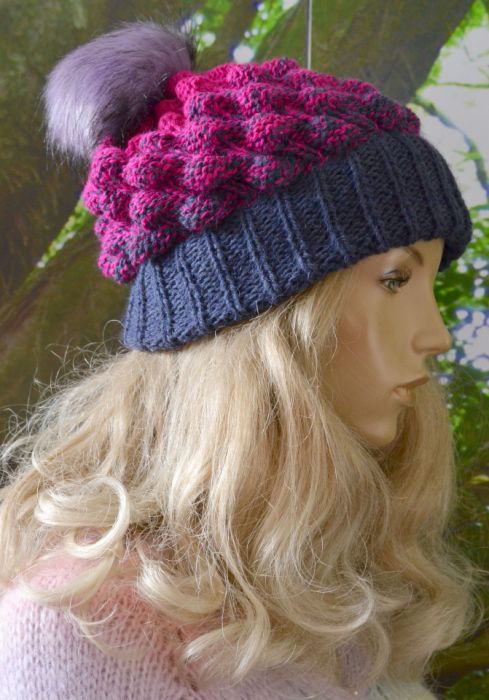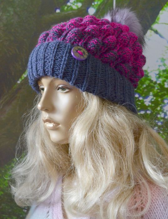 Nazwa produktu: Czapka bąblowa w kolorze granat i fuksja .