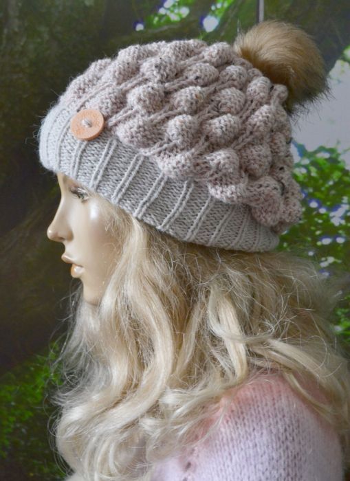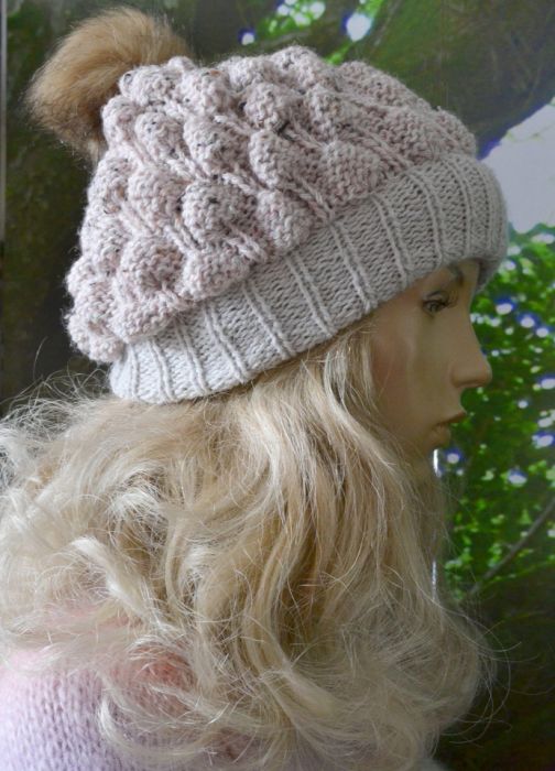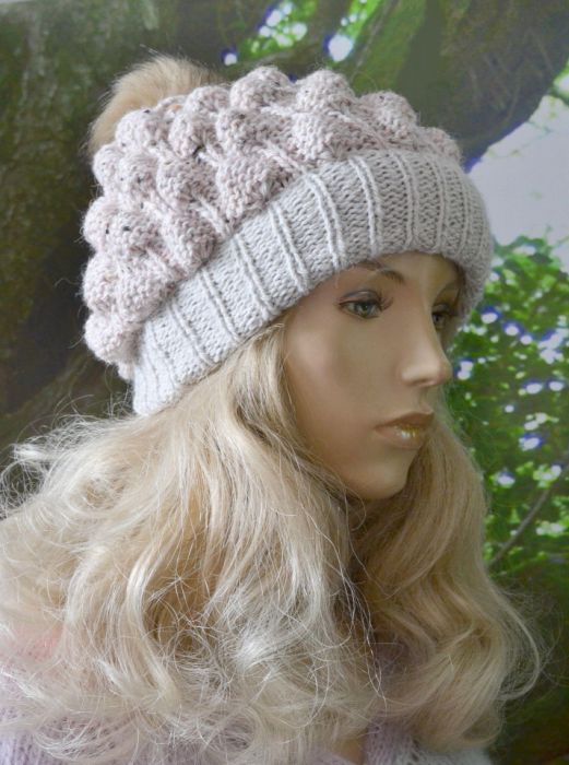 Nazwa produktu: Czapka bąblowa z pomponem w kolorze beżowy