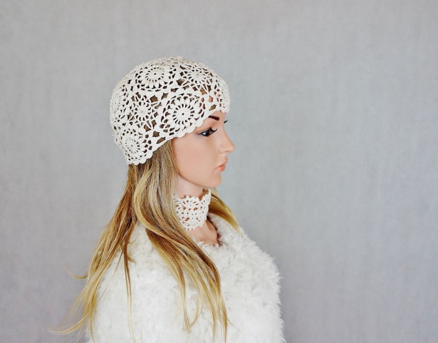 Czapkę wykonano ręcznie szydełkiem z kordonka, bawełna - 100%. Wymiary czapki; głębokość - 20 cm, szer. dołu - 54, 58 cm. Czapka doskonale dopasowuje się do głowy. Proszę prać ręcznie, suszyć w stanie rozłożonym.